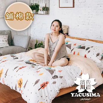 【濱川佐櫻-小樹之歌】文青風法蘭絨雙人兩用毯被鋪棉床包組